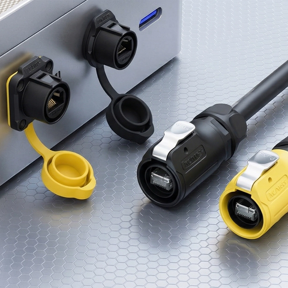 Available in the LP-16 series for standard industrial use and the YT series (ER-RJ45) for heavy-duty extreme environments, these connectors support Cat5e, Cat6, and Cat6A cabling with data rates up to 10 Gbps. Threaded or bayonet locking mechanisms ensure a vibration-proof, IP67/IP68-rated seal that stands up to factory floors, outdoor surveillance networks, LED control systems, and beyond.
